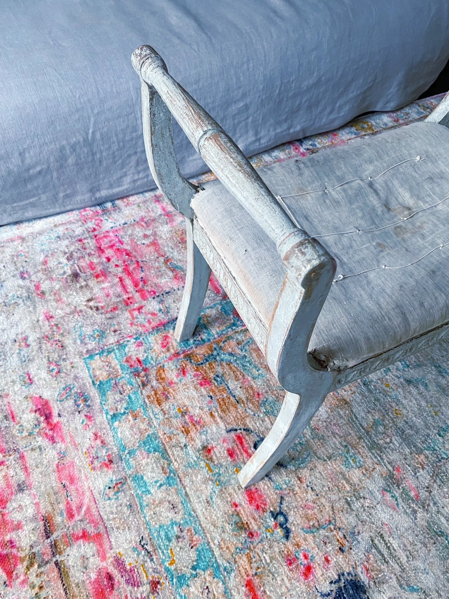 After years in a large family home, my clients returned to a historic building in the heart of the West Village. The idea was to create a calming, streamlined oasis where they could enjoy sweeping views of lower Manhattan. The walls are powder coated white, the furniture is modern and comfortable. In this very soft palette the pops of color and pattern provide a rhythm throughout.